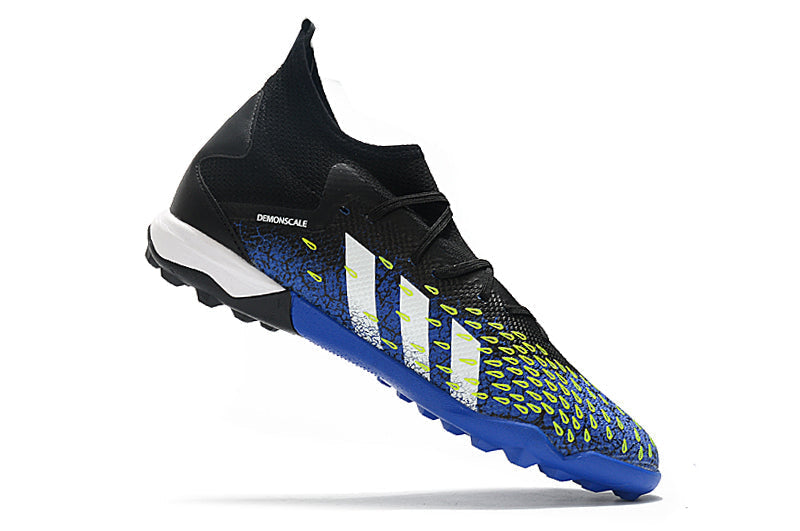 As paredes não conseguem conter você. Os rivais não podem te deter. Na quadra, é você quem comanda. Libere sua energia imbatível com a Predator Freak. Esta chuteira adidas de cano alto para quadras society ajuda você a dominar o jogo. O cabedal de compressão revestido em tecido segura no pé sem precisar de cadarços. Os elementos Demonscale impressos em 3D espalham-se pela chuteira e ajudam você a mostrar quem manda na bola.
