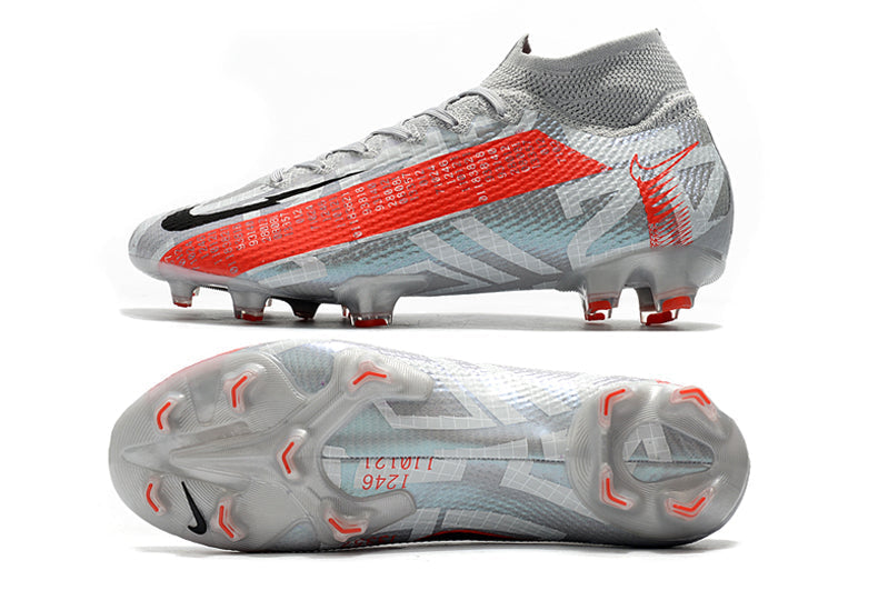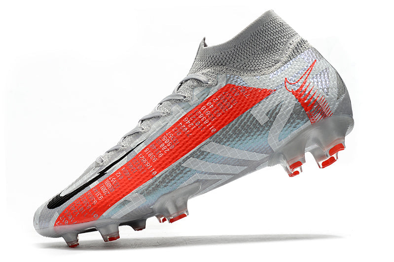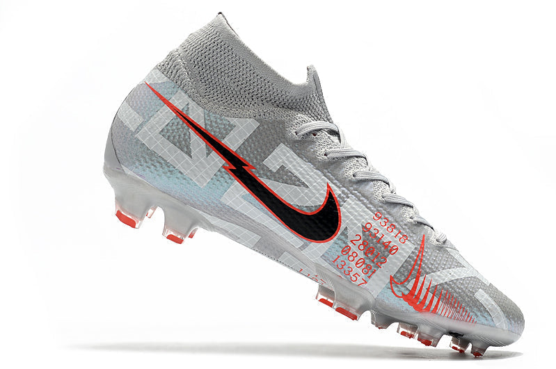 A Mercurial 360 é uma das chuteiras Nike mais adoradas de todos os tempos. Centenas de jogadores e jogadoras profissionais usam este modelo em todo o mundo. Projetada para voar baixo, o material leve e o caimento firme trazer a tração que você precisa para deixar o outro time comendo poeira. Complementando a inovação Flyknit 360 da 6, a Chuteira Nike Mercurial Superfly 7 Elite FG possui zona Nike Aerotrak no antepé e uma estrutura discretamente mais rígida para ajudar a aumentar a tração.