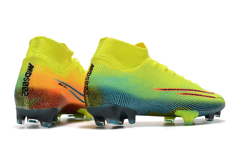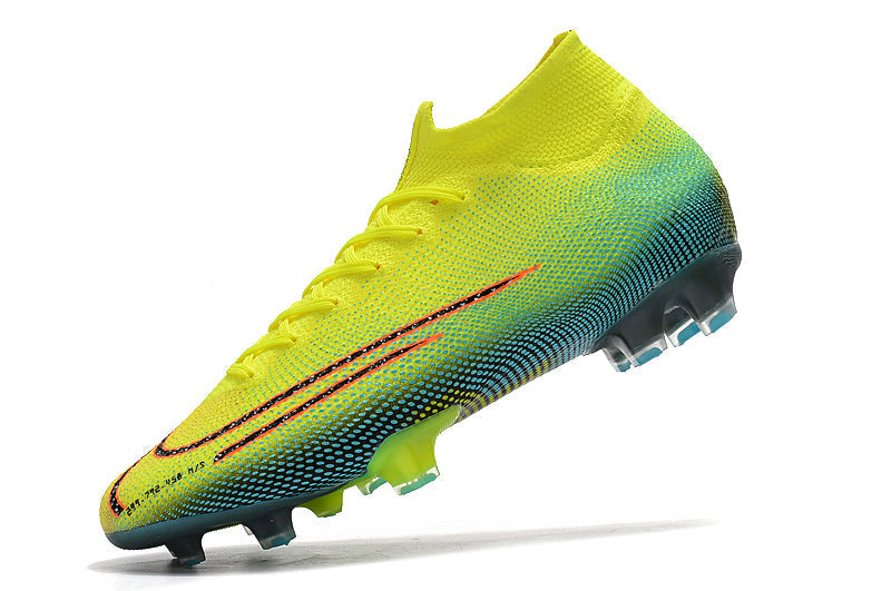 A Mercurial 360 é uma das chuteiras Nike mais adoradas de todos os tempos. Centenas de jogadores e jogadoras profissionais usam este modelo em todo o mundo. Projetada para voar baixo, o material leve e o caimento firme trazer a tração que você precisa para deixar o outro time comendo poeira. Complementando a inovação Flyknit 360 da 6, a Chuteira Nike Mercurial Superfly 7 Elite FG possui zona Nike Aerotrak no antepé e uma estrutura discretamente mais rígida para ajudar a aumentar a tração.