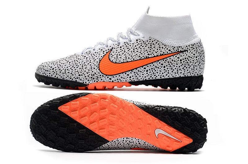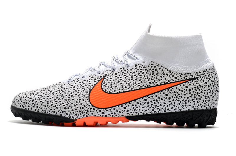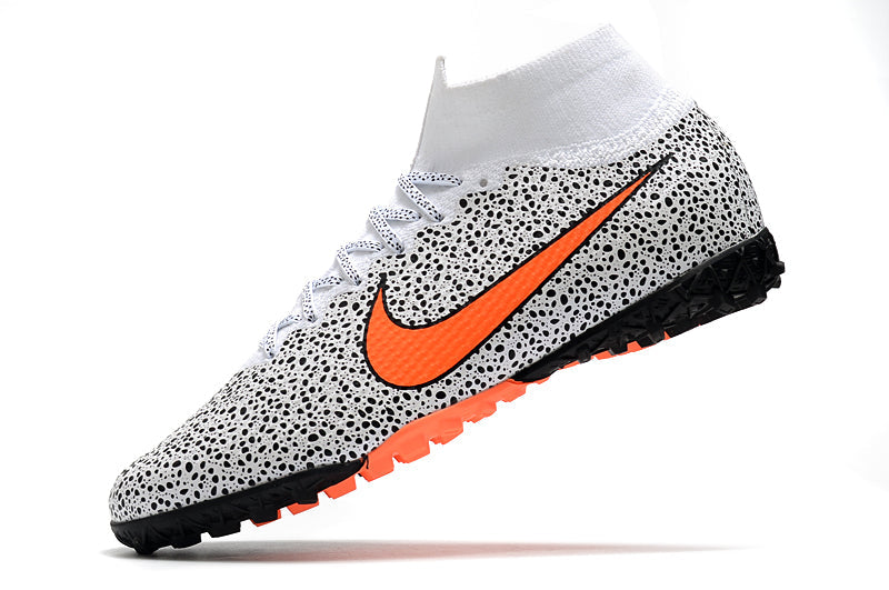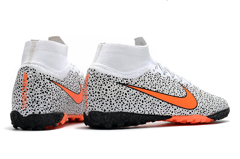 Para comemorar seu 20º aniversário, a nova Chuteira Nike MercurialX Superfly VI Elite Turf adota uma estética clean. O Swoosh (logomarca da Nike) na parte dianteira do pé é pequeno, e o calcanhar traz um “M” grande e ousado. Envolve o seu pé para um ajuste perfeito e toque excepcional na bola, ao passo que a placa no antepé proporciona aceleração explosiva em campo.