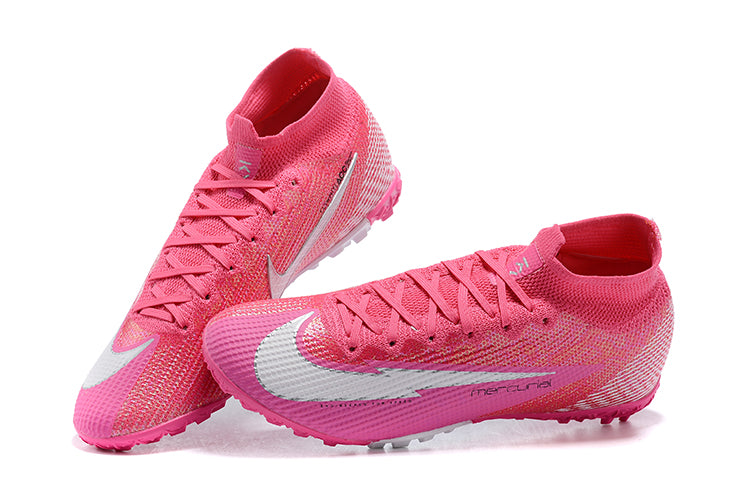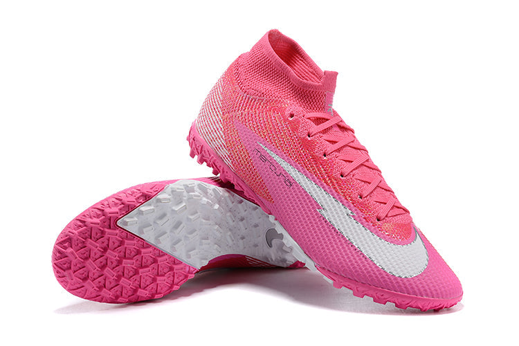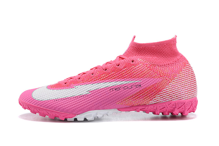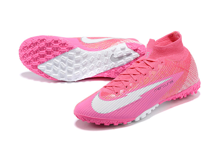 Chuteiras Nike Mercurial Vapor XIII Elite FG para adultos. Chuteiras de tecido com meia, para utilizar em campos de relva natural seca ou húmida. Chuteiras de gama alta, cor Pink blast-White-Black-Chrome
